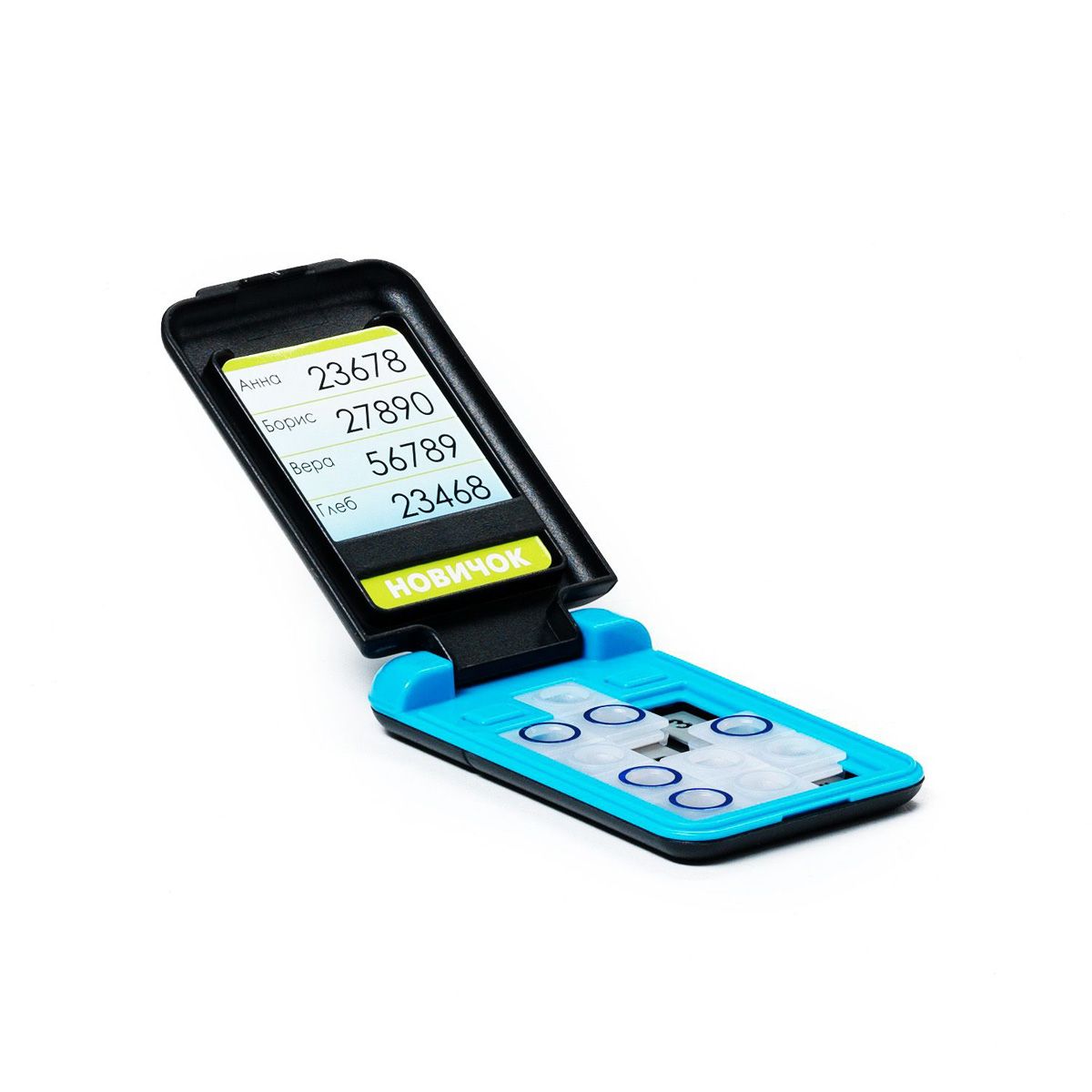 Самый доступный и совершенно безопасный, яркий и модный персональный смартфон, не требующий подзарядки и обновления программного обеспечения принесет удовольствие как ребенку, так и взрослому. Кому позвоним по новому смартфону? Компактный продуманный дизайн позволит не отвлекаться от игры даже в стесненных дорожных условиях. Карточка с заданиями помещается во внутреннее отделение дисплея . Кнопки на клавиатуре игры необходимо перемещать таким образом, чтобы все цифры из задания стали видны сквозь отверстия на кнопках. Игрушка с заданиями от простых - для семилетних малышей, до сложных - для опытных любителей логических головоломок. Увлекательная игра скрасит время вынужденного ожидания и длительного путешествия.