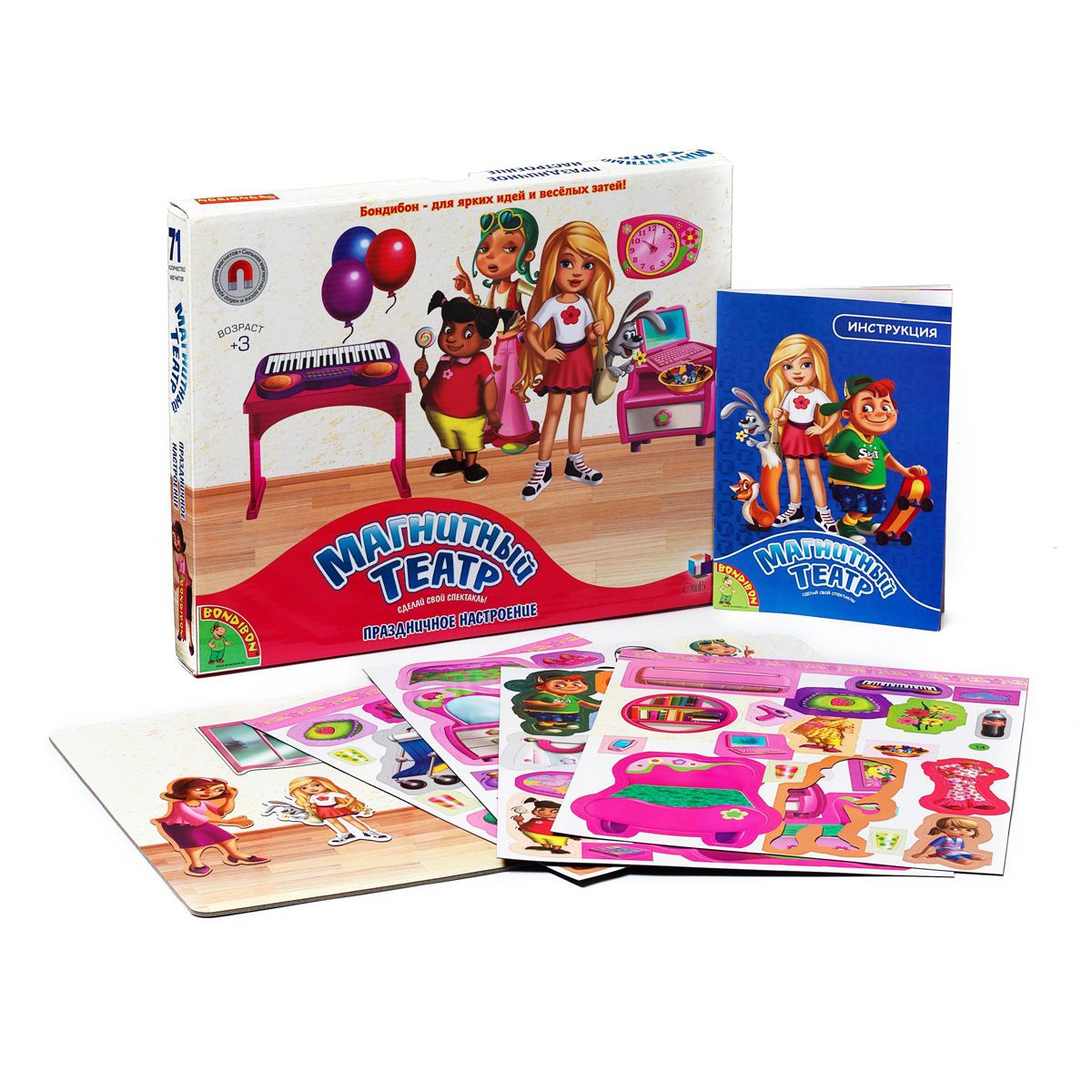"Праздничное настроение" - магнитный театр BONDIBON, большой набор, 71 магнит