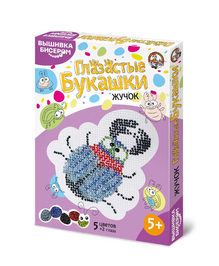 В набор входит пять цветов бисера, два глаза, канва и схема для вышивки. Приложив старание, получите отличный результат.