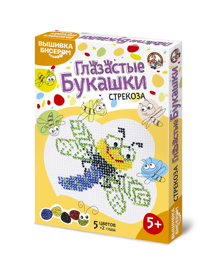 В набор входит пять цветов бисера, два глаза, канва и схема для вышивки. Приложив старание, получите отличный результат.