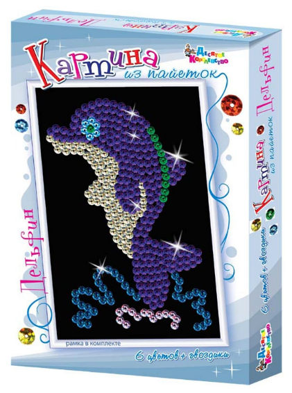 Этот набор лучше других наших наборов подходит для того, что бы попробовать себя в новом деле - создании картинs из паеток. Этого симпатичного дельфина, созданного для Вас известным детским художником Андреем Копыриным, выложить, вставить в рамку размером 26 на 18 сантиметров и с гордостью повесить на стену или подарить кому-нибудь в состоянии даже многие из тех, кто занимается этим увлекательным и интересным делом впервые. Для рисунка требуется всего 344 пайетки, при этом он совсем не выглядит простым