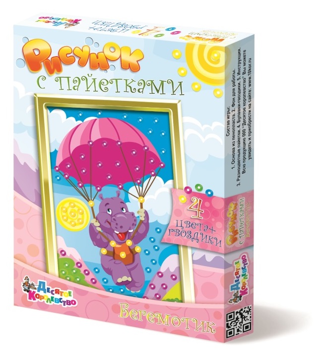 Рисунок с пайетками Бегемотик - набор, позволяющий сделать неповторимую сияющую картину своими руками.