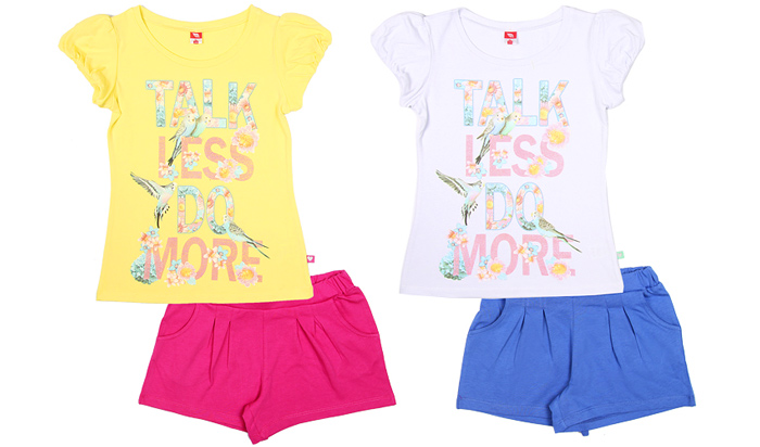 Состав полотна: фуфайка-хлопок 92%, лайкра 8%, шорты-хлопок 100%.