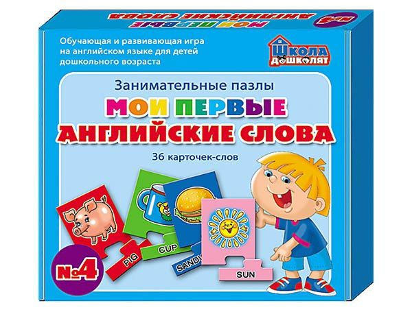 В набор занимательные пазлы "Мои первые английские слова-4" входят карточки-пазлы по следующим темам:
