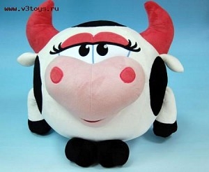 Коровка Муля из мультфильма <<Смешарики>>. Ее особенность - круглое тельце, большие глаза и нос. Также присутствуют рога, копыта, ушки. Игрушка имеет мягкое наполнение. В дизайне присутствуют яркие, привлекательные для ребенка краски.