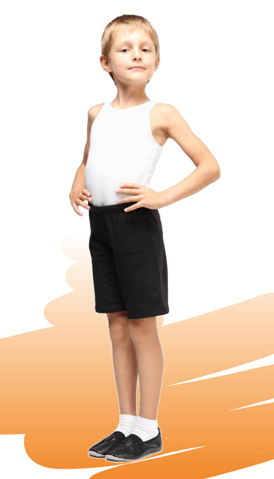 Гимнастические шорты пошиты из эластичного хлопкового полотна, не мешающего движениям спортсмена и выполнению гимнастических элементов.