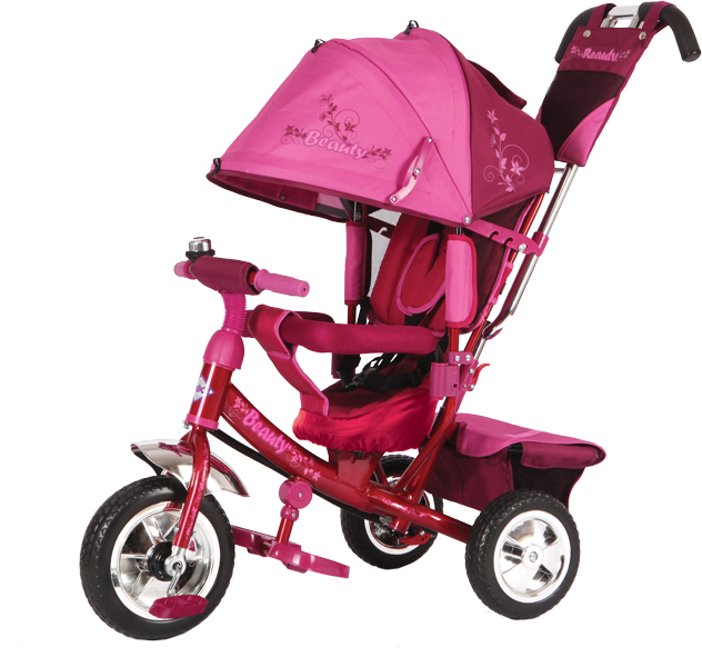 Трехколесный велосипед Beauty выполнен в розово-красной цветовой гамме и подойдет для девочки. Такой универсальный детский транспорт позволяет ребенку как ездить самостоятельно, так и кататься под контролем взрослого. При самостоятельном передвижении ребенок будет приводить велосипед в движение при помощи педалей и управлять им рулем. Если же велосипед выполняет функцию прогулочной коляски, взрослый сможет толкать его перед собой при помощи специальной ручки, которая также служит и для управления.