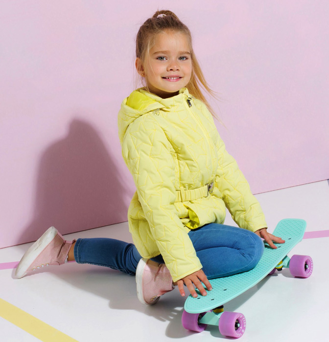 ОСОБЕННОСТИ: ? Стильная стеганая куртка, стежка ? Съемный капюшон на липучках Velcro ? Эластичные резинки на капюшоне ? Съемный эластичный ремень с пряжкой ? 2 кармана ? Светоотражающие элементы ? Внутренняя размерная этикетка с местом для имени