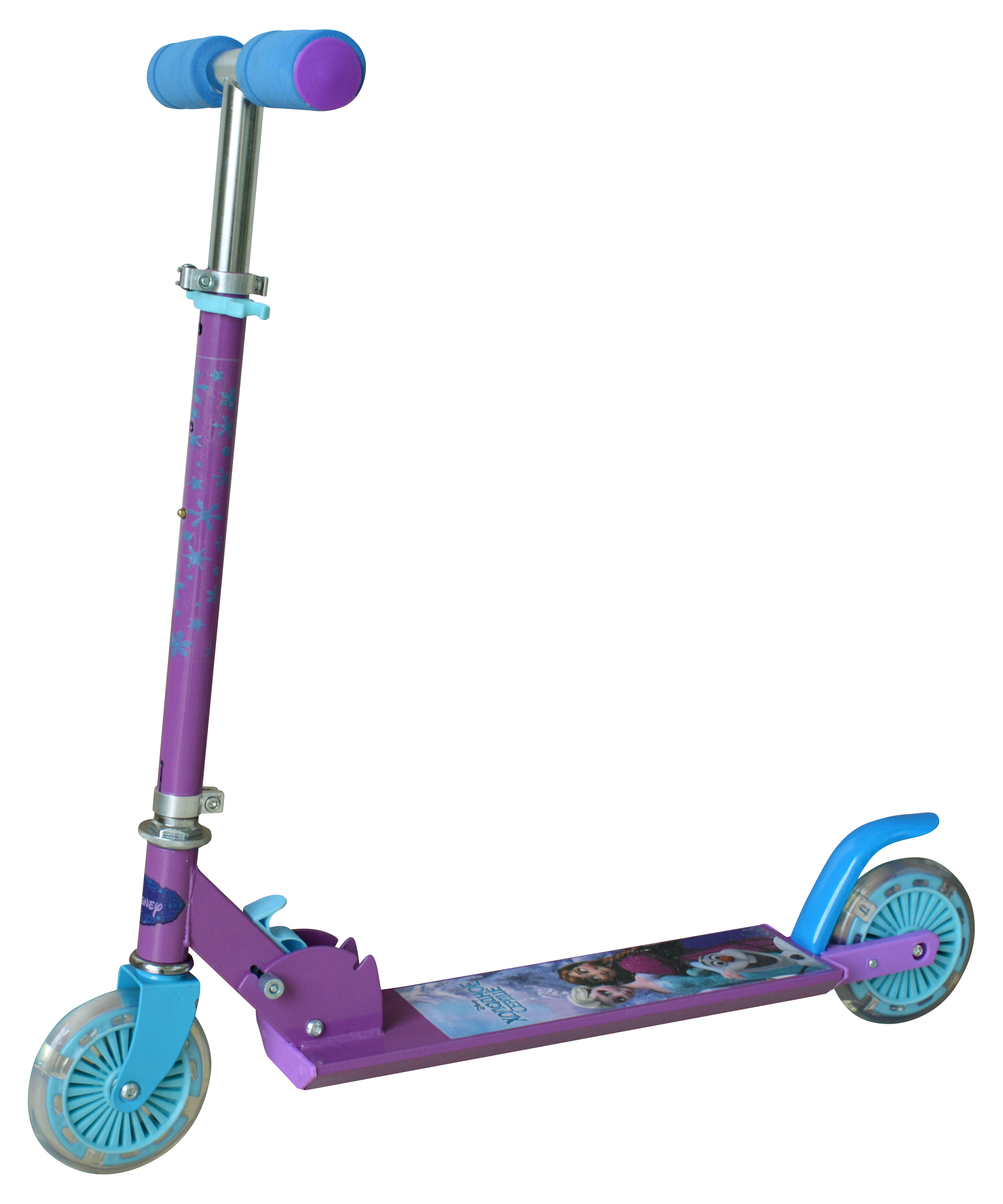На платформе данного самоката нанесен рисунок двух сестер из очень популярного мультфильма, что порадует маленьких поклонниц "Холодного сердца". Фиолетовый самокат имеет ножной тормоз и регулируемую рулевую стойку, которую с легкостью можно подогнать под рост ребенка. Крупные колеса и ручки выполнены из ПВХ.
