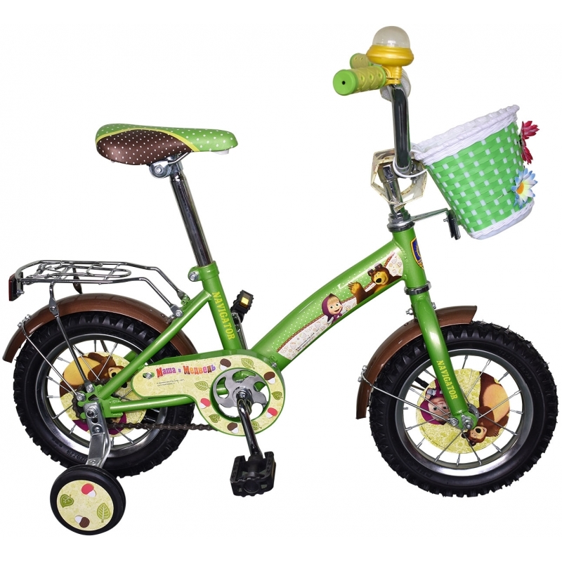 Детский двухколесный велосипед со страховочными колесами "Маша и Медведь" от производителя Navigator предназначен для активных и подвижных детей. Основа велосипеда изготовлена из металла приятного зеленого цвета. Высоту сиденья велосипеда можно регулировать по росту ребенка. Пластиковые педали удобны для детских ног. Задние боковые колеса особенно удобны для тех детей, которые только учатся ездить на двухколесном велосипеде. Основные и боковые колеса изготовлены из резины, что обеспечивает хорошее сцепление с поверхностью, на которой ездит велосипед.
