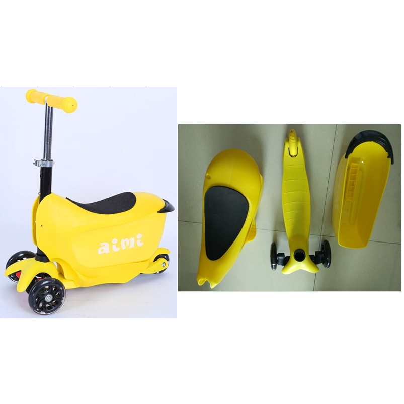 Трехколесный самокат Airit - это интересный детский транспорт с вариативной компоновкой. Ребенок может кататься на нем стоя на платформе и отталкиваясь от земли одной ногой. Когда малышу захочется разнообразить свои поездки, то на самокат можно будет легко установить съемное седло, которое позволит ребенку кататься сидя. Ручка самоката может регулироваться по высоте, поэтому ее можно настроить под рост ребенка. Современные подшипники в сочетании с полиуретановыми колесами обеспечивают самокату мягкий ход.
